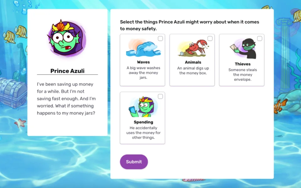Introduce essential money concepts through engaging, game-based learning designed specifically for elementary students. Vault: Understanding Money combines financial education with social-emotional learning skills, helping young learners build healthy money habits through interactive stories and real-life scenarios. Students explore fundamental concepts like spending, saving, earning, and making smart financial choices through an immersive experience featuring diverse characters and age-appropriate activities. This comprehensive course builds the foundation for lifelong financial wellness while fitting seamlessly into math, social studies, or life skills curricula with complete lesson guides and minimal prep time required.