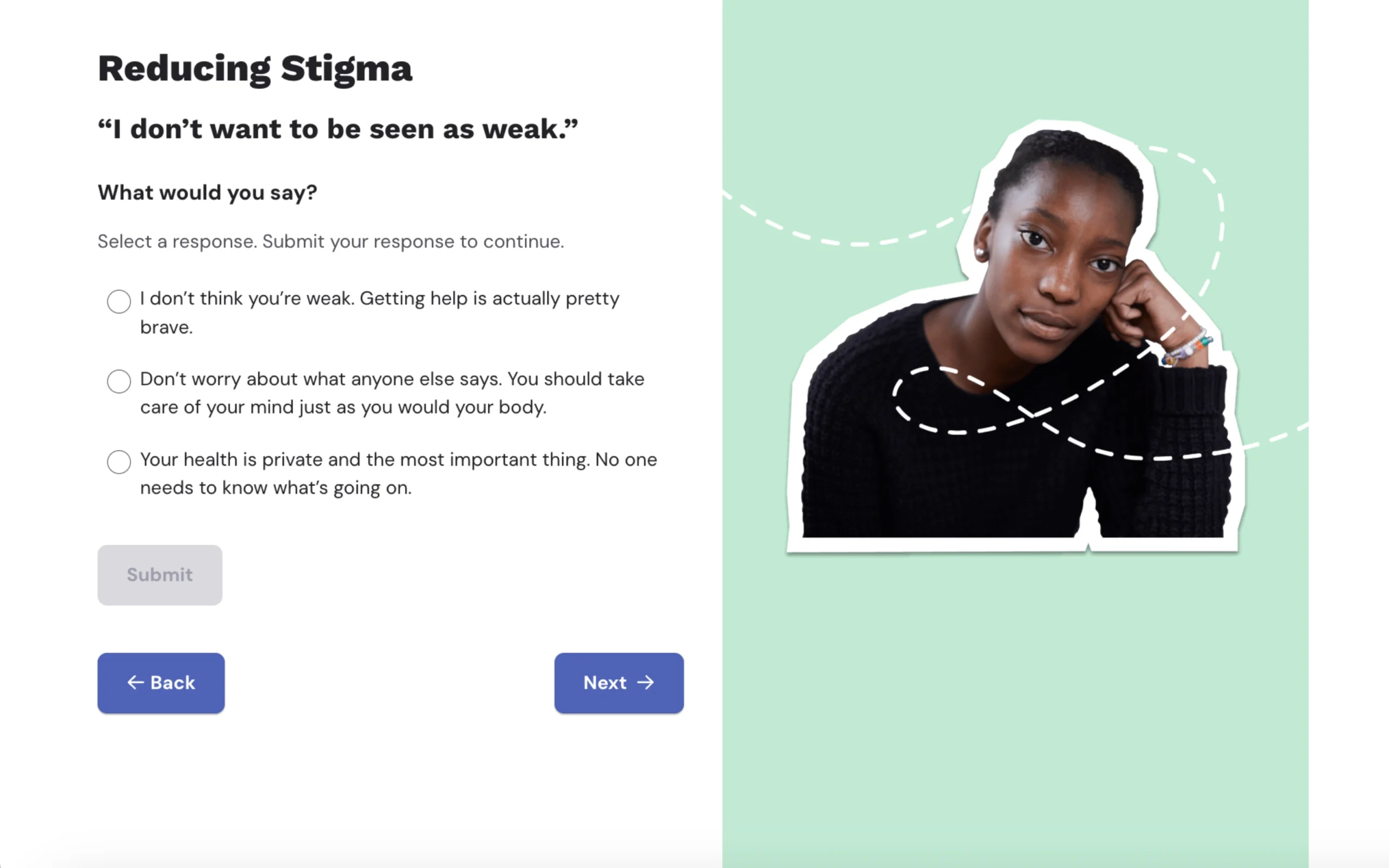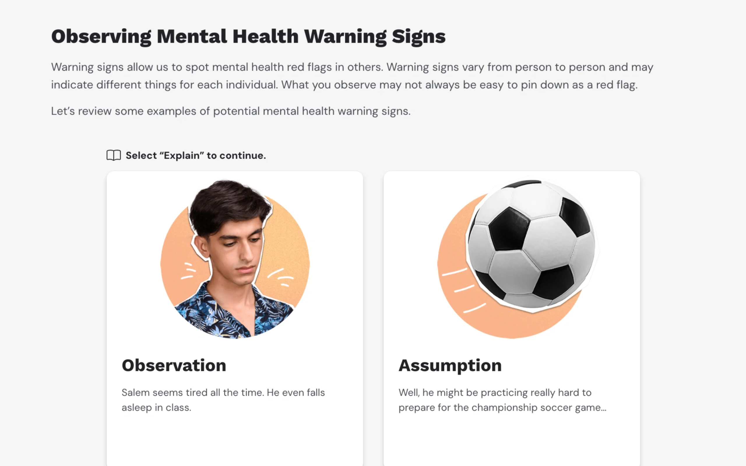 Students learn how to recognize when help is needed and how to access it for oneself and to encourage others to seek help when needed. The lesson also addresses stigma and how it can hinder help-seeking behaviors.